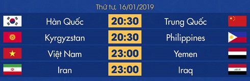 Lịch thi đấu Asian Cup 2019 ngày hôm nay 16/1: