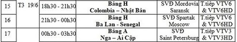 | Lịch thi đấu trực tiếp World Cup 2018 hôm nay ngày 19 rạng sáng ngày 20/6. |