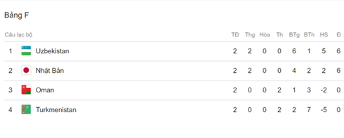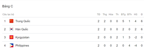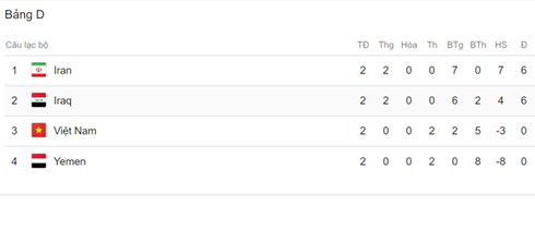 Bảng xếp hạng VCK Asian Cup 2019: