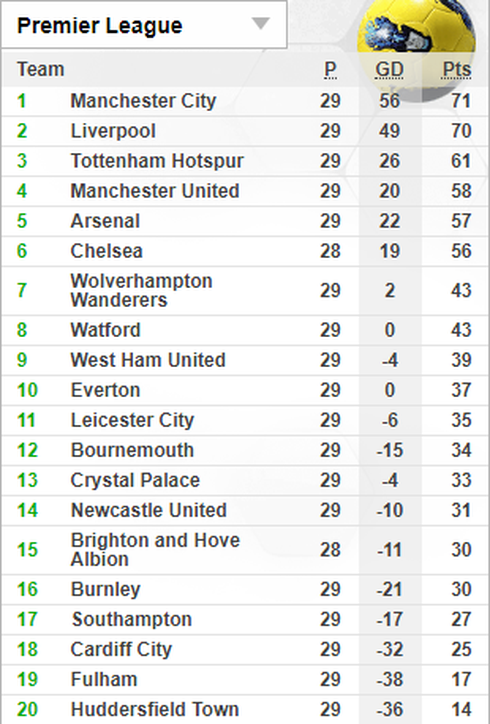 Cũng ở vòng đấu thứ 30, hai đội đầu bảng là Man City và Liverpool đều thi đấu trên sân nhà trước những đội bóng được đánh giá là yếu hơn rất nhiều là Watford và Burnley.