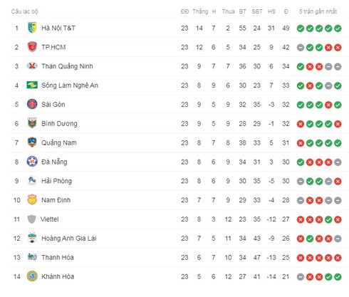 Bảng xếp hạng V-League tính đến thời điểm hiện tại. |