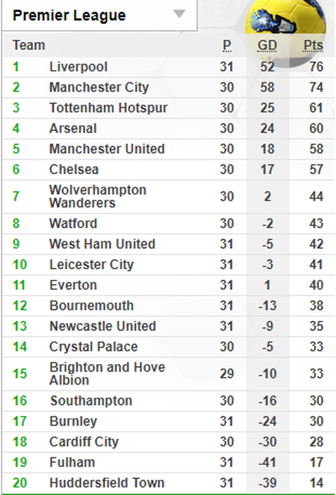 Liverpool hiện đang hơn đội nhì bảng Manchester City 2 điểm nhưng thi đấu nhiều hơn đối thủ 1 trận. Với việc Man City chỉ phải gặp Fulham, đội đang đứng vị trí áp chót, Liverpool cần phải có được 3 điểm trước Tottenham nếu không muốn bị soán ngôi nhất bảng.
