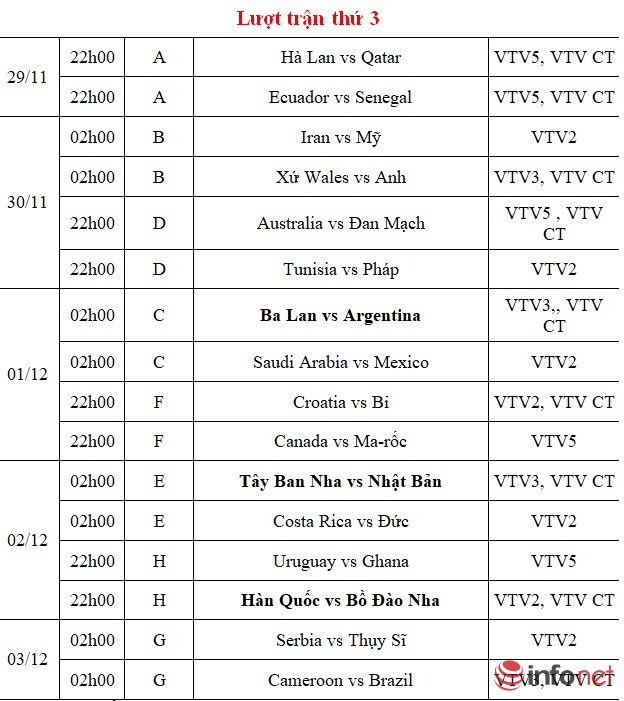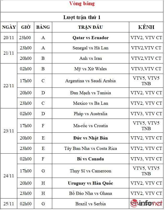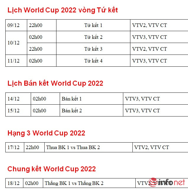 Cùng Infonet cập nhật liên tục lịch thi đấu World Cup 2022 mới nhất nhé: