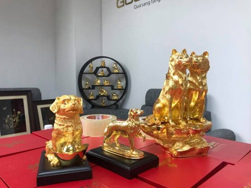 Có giá từ 5,5 triệu đến 70 triệu đồng, bộ sưu tập Linh khuyển mạ vàng với những hình dáng chú chó gần gũi ngay từ khi xuất hiện đã thu hút sự quan tâm của thị trường quà tặng Tết Mậu Tuất 2018. |