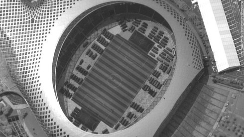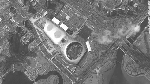 Ảnh chụp vệ tinh cho thấy xe quân sự của quân đội Trung Quốc tập trung ở sân vận động Thâm Quyến. |