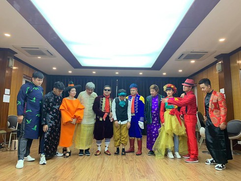 Dàn nghệ sĩ tạo dángtrong hậu trường sau khi khép lạibuổi ghi hình chương trình thay thế "Táo quân".
