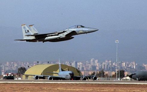Tiêm kích F-15 của Mỹ cất cánh từcăn cứ không quân Incirlik tại Thổ Nhĩ Kỳ. (Ảnh: AP) |