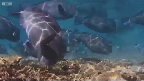 Hình ảnh những con cá mó, còn gọi là cá vẹt, nghiền nát san hô và thải ra cát trắng lọt vào ống kính của các nhà làm phim tài liệu thiên nhiên Blue Planet II, Independent hôm 16/11 đưa tin. Một con cá mó có thể tạo ra khoảng 400kg cát mỗi năm.