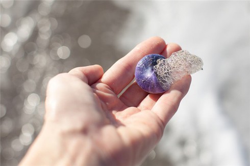 Ốc sên tím Janthina janthina thường sống ở vùng biển nhiệt đới ôn hòa, trôi nổi trên mặt nước nhiều năm tháng. Ảnh: yan. |