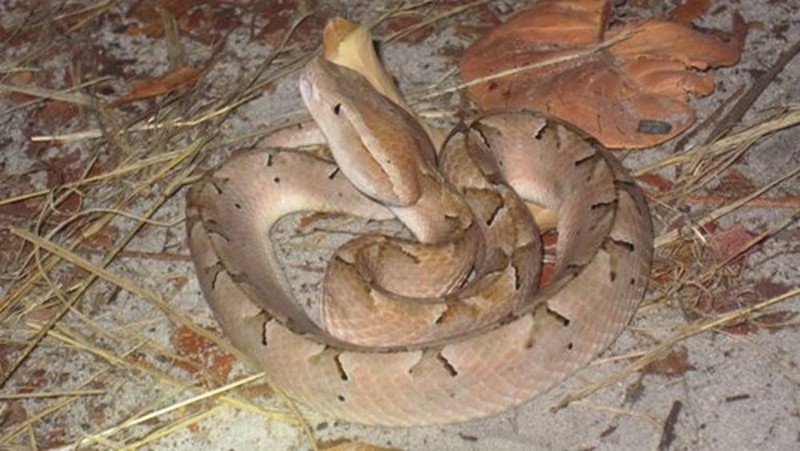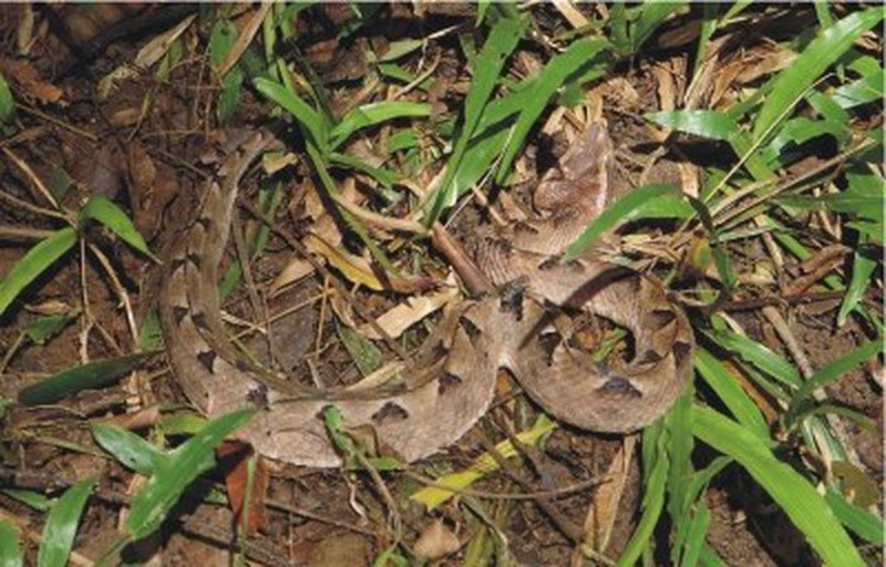Rắn thường nằm cuộn tròn trong lá cây khô nên rất khó phát hiện và tránh. Sau khi cắn, rắn thường nằm yên tại chỗ, không di chuyển. |