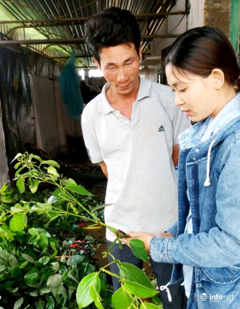 Anh Sơn chia sẻ, năm nay tiêu rớt giá còn khoảng 90 ngàn/kg nên việc trồng mới diện tích tiêu cũng giảm, giá tiêu giống cũng theo đó xuống thấp, với giống tiêu Lộc Ninh, Vĩnh Ninh được anh trồng giống chuẩn và lấy tại vườn nhà và một số hộ trồng giống tiêu ở Bình Phước đã quen biết từ lâu.