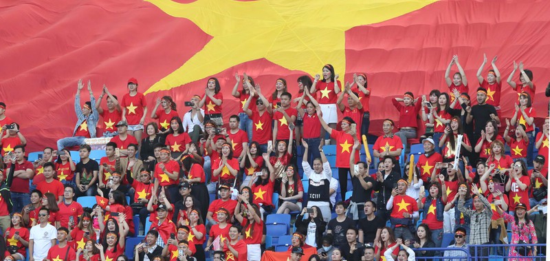 Người hâm mộ Việt Nam cổ vũ đội tuyển nước nhà trong trận đấu với Jordan. |