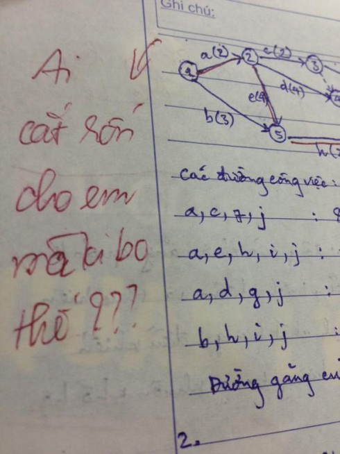 "Chỉ vì em lỡ hết giấy kiểm tra thôi mà cô!" - Học sinh đáp.
