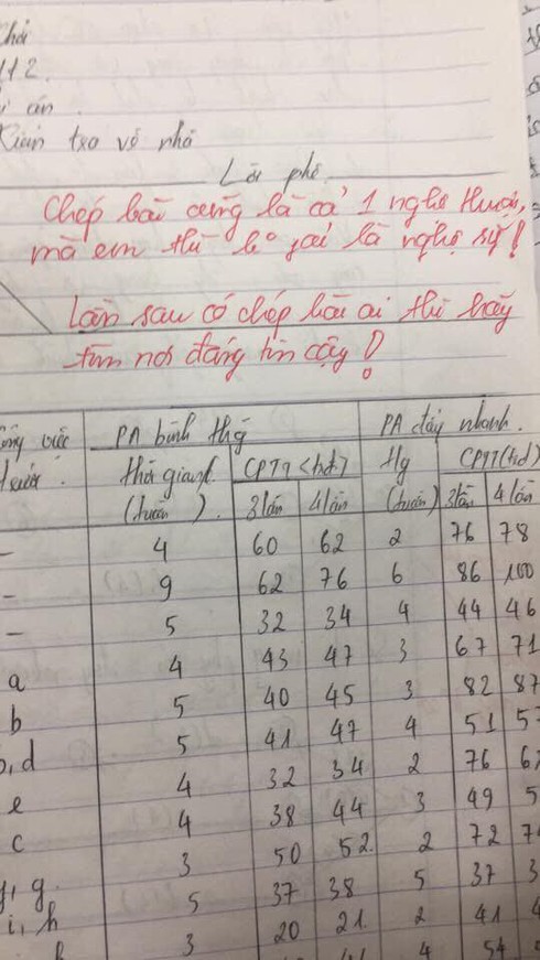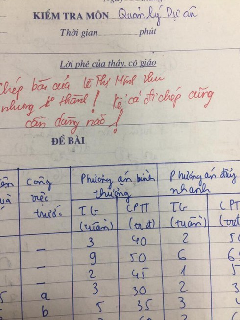Câu khuyên nhủ hết sức "chân thành" từ giáo viên "Lần sau có chép bài ai thì hãy tìm nơi đáng tin cậy".