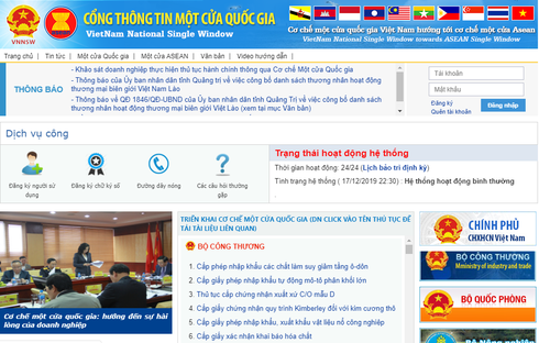 Theo Báo cáo của Tổng cục Hải quan – Cơ quan thường trực Ủy ban Chỉ đạo quốc gia về Cơ chế một cửa ASEAN (ASW), tính đến hết ngày 15/10/2019, đã có 13 bộ, ngành đã tham gia kết nối với 184 thủ tục hành chính được đưa lên cơ chế một cửa quốc gia, với tổng số hồ sơ hành chính đã được xử lý trên cổng thông tin một cửa quốc gia xấp xỉ 2,56 triệu bộ hồ sơ của 33.200 doanh nghiệp.