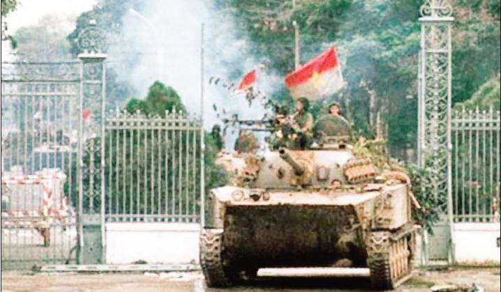Xe tăng quân giải phóng tiến vào Dinh Độc Lập ngày 30/4/1975. (Ảnh tư liệu)