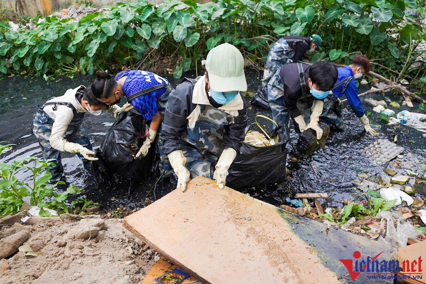 Đến nay, nhóm đã đi làm được khoảng 15 buổi, dù mỗi lần đi dọn rác rất mệt và đối mặt với nhiều nguy hiểm, ngâm mình nhiều tiếng đồng hồ dưới những dòng kênh mương đen ngòm, hôi thối nhưng các bạn trẻ đều rất hào hứng tham gia.