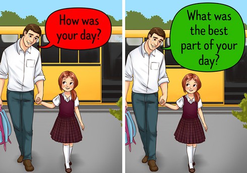 "Ngày hôm nay thế nào?", ngụ ý trả lời chỉ 1 hoặc 2 từ., nhưng nếu bạn thực sự muốn biết ngày hôm nay của con mình như thế nào thì hãy hỏi những câu hỏi cụ thể hơn.