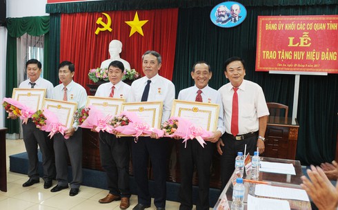 Các Đảng viên ưu tú tạiĐảng ủy khối Các cơ quan tỉnh nhận huy hiệu Đảng trong dịp kỷ niệm Quốc khánh 2/9 năm nay. |
