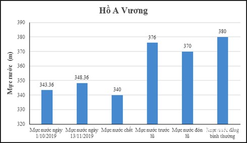 Dựa trên số liệu công bố của hồ A Vương và sông Bung 4 trên trang web dữ liệu các hồ chứa thủy điện của Tập đoàn Điện lực Việt Nam (EVN), TS Lê Hùng cho hay, tại hồ A Vương, mực nước ngày 1/10 là 343.36m và mực nước ngày 13/11 là 348.46m.