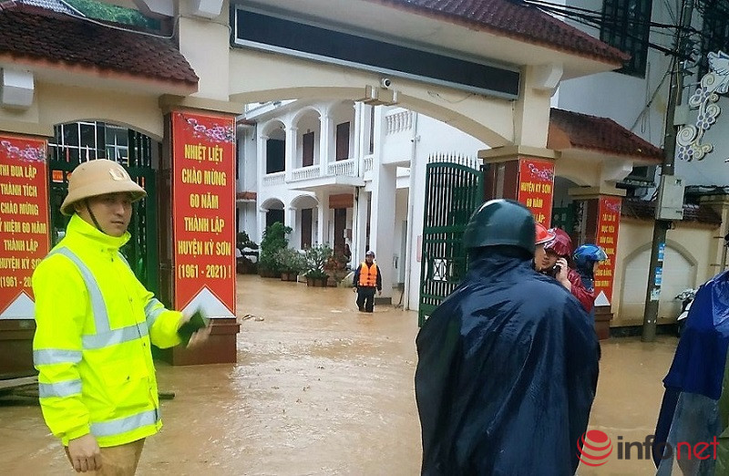 Nhiều cơ quan, đơn vị hành chính, trường học… của huyện Kỳ Sơn đóng tại thị trấn Mường Xén cũng bị ngập nặng từ 0,5 – 1 mét.