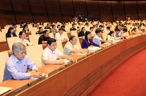 Các Đại biểu Quốc hội biểu quyết thông qua một dự án luật. (Ảnh: VGP) |