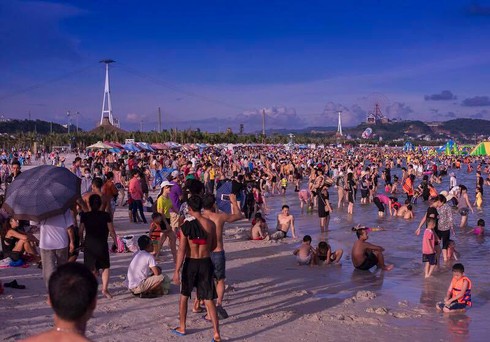 Rất đông du khách tắm biển trên Vịnh Hạ Long |