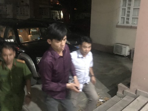 Công an dẫn giải Hoàng Nam (ở giữa) về trụ sở |