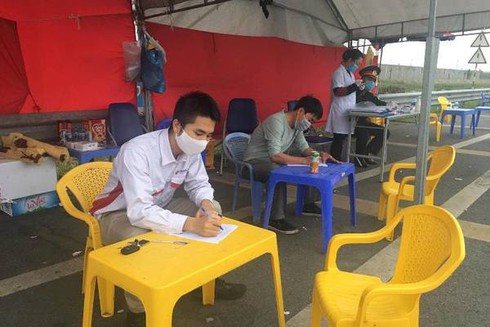 Các tài xế vào Hải Phòng vì lý do chính đáng phải khai báo y tế. |