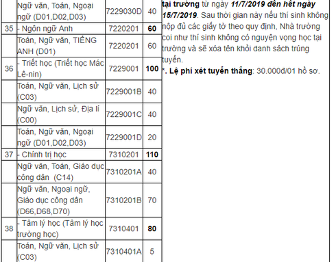 Mã ngành Đại học Sư phạm Hà Nội 2019