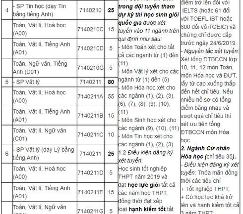 Khi làm hồ sơ dự thi và xét tuyển vào các trường đại học, cao đẳng 2019, thí sinh cần lưu ý mã trường, mã ngành mà mình đăng ký. Khi xét tuyển vào Đại học Sư phạm Hà Nội cần ghi đúng mã trường là SPH còn vào ngành Sư phạm Tin học mã ngành là 7140210