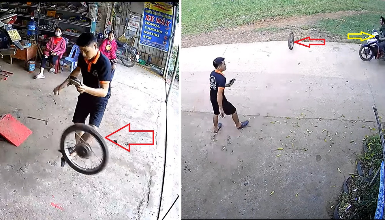 Mắc lỗi bất cẩn, anh thợ sửa xe 'bất lực' đuổi theo chiếc lốp