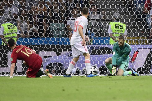 Trong trận đấu đêm qua tại Sochi, De Gea đã 3 lần vào lưới nhặt bóng, trong đó đáng trách nhất là bàn thua thứ hai diễn ra vào cuối hiệp 1. Từ cú sút không lấy gì làm hiểm hóc của Ronaldo bên phía Bồ Đào Nha, thủ thành 27 tuổi mắc sai lầm khi cúi xuống bắt bóng một cách hời hợt, để bóng trôi qua tay và lăn vào lưới.