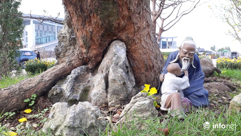 Ở đây, người ta bố trí 2 con rồng (chậu cây) ôm lấy cây mai với ý nghĩa "song long chầu mai".