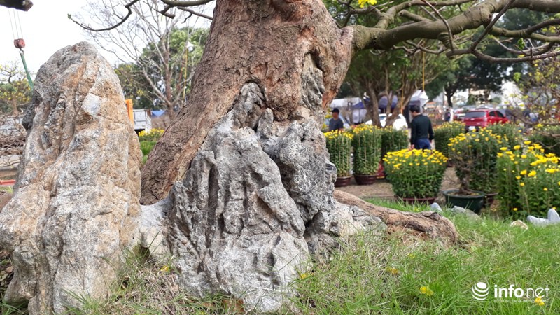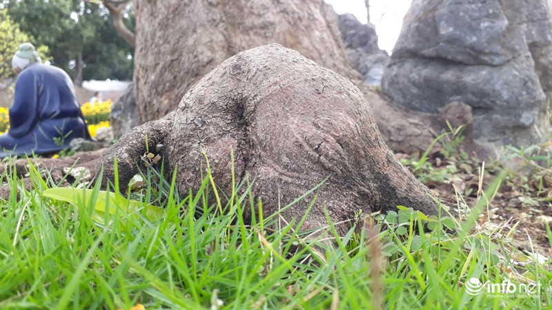 Những rễ cây lớn nổi lên mặt đất tạo nên những u lớn, khiến nhiều người xem phải trầm trồ về dáng vẻ cổ, dị và hiếm của cây.