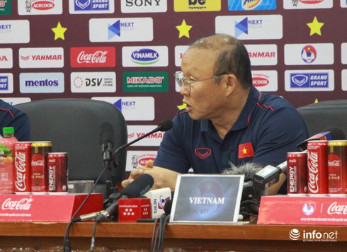 Chia sẻ về việc đã 3 lần đối đầu Malaysia, đối với trận đấu ngày mai ĐT Việt Nam có bao nhiêu % chiến thắng? HLV Park Hang Seo cho biết: "Tôi không chú trọng lắm vào thành tích đối đầu trước đây, đó đã là quá khứ rồi. Tôi không thể nói giành chiến thắng bao nhiêu %, nhưng tôi muốn thắng trận ngày mai". |