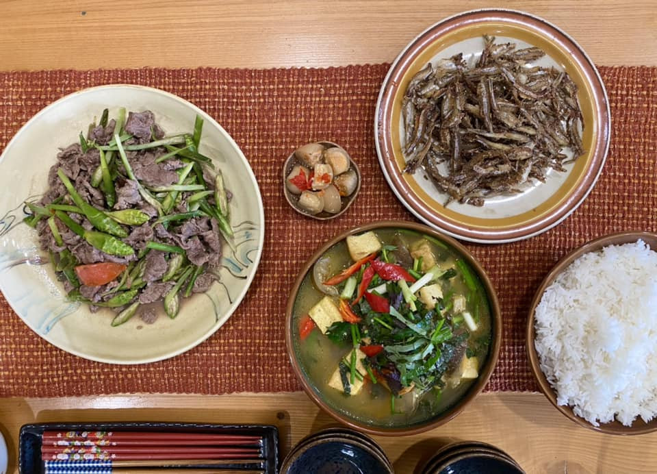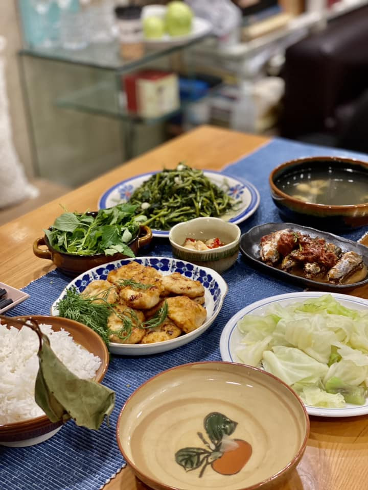 Nếu để ý sẽ thấy mâm cơm nhà chị Quyên thường có món mặn, nhạt, khô, nước cho hài hoà cả hương vị và màu sắc. Ngoài ra, dù bữa ăn cầu kỳ hay phức tạp thì chị Quyên cũng rất chú ý đến yếu tố cân bằng dinh dưỡng.