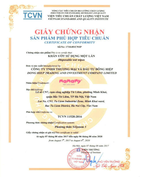 Theo ghi nhận của Viện Tiêu chuẩn Chất lượng Việt Nam, Mamamy là thương hiệu khăn ướt đầu tiên và duy nhất đã kiểm nghiệm và công bố hợp chuẩn tính đến thời điểm này – 8/2017. Một lần nữa, đây là minh chứng thuyết phục nhất để người dùng thêm tin tưởng và an tâm khi sử dụng khăn ướt Mamamy nói riêng, mặt hàng khăn ướt nói chung khi cơ quan nhà nước đã thực sự vào cuộc, quản lý gắt gao chất lượng sản phẩm dựa trên những tiêu chí được quy định vô cùng chặt chẽ trong bộ TCVN 11528:2016.