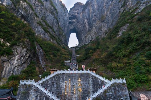 Cổng Thiên Môn Sơn với những bậc thang dốc đứng. Nhiều tay đua xe ô tô đã chinh phục những bậc thang này bằng cách... lái cả xe hơi lên trên. |