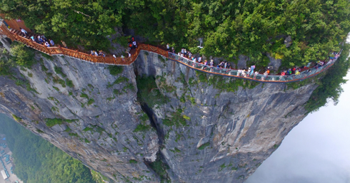 Cầu kính và đường đi bộ trên vách núi tại Thiên Môn Sơn cũng là thử thách du khách không thể bỏ qua khi tới đây. |