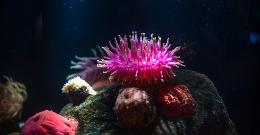 Loài hải quỳ nhỏ giống như bông hoa này được tìm thấy từ Vương quốc Anh đến Địa Trung Hải và dọc theo bờ biển Đại Tây Dương của Châu Phi. Nó có cơ thể màu đỏ sẫm với 192 xúc tu màu đỏ nhạt hơn hoặc thậm chí màu hồng. Những xúc tu này có thể rút lại hoàn toàn, để lại đốm màu đỏ hoặc cam. Khi các xúc tu mở ra, có thể tìm thấy những hạt nhỏ màu xanh lam ngay bên dưới chúng. Những hạt này được gọi là acrorhagi và chứa các tế bào đốt của hải quỳ.