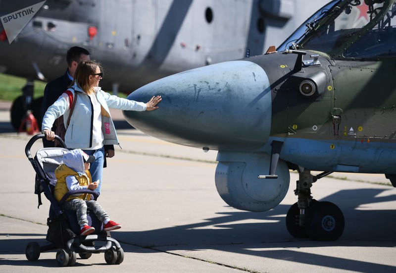 Người thăm quan thích thú trước trực thăng "cá sấu" Ka-52. |