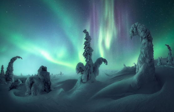 Hình ảnh tuyệt đẹp này do nhiếp ảnh gia Nico Rinaldi chụp cực quang trên vùng Murmansk ở miền bắc nước Nga. Những cái cây uốn lượn trông giống như quái vật tuyết đang phát ra ánh sáng kỳ lạ.Hình ảnh cực quang do nhiếp ảnh gia Asier López Castro chụp ở Stokksnes, Iceland. Cực quang xuất hiện ở khu vực được cho là nơi có nhiều ngôi nhà của yêu tinh. Các sọc đen và xám tương phản với các vòng xoáy màu xanh lá cây đang nhảy múa trên bầu trời.Luis Solano Pochet đã chụp được bức ảnh cực quang trông giống như Quetzal thần thoại, loài chim linh thiêng trong nền văn hóa Maya và Aztec. Bức ảnh được chụp ở Dyrhólaey, Iceland.Nhiếp ảnh gia Rachel Jones Ross chụp lại hình ảnh cực quang màu tím và xanh lá cây tạo thành vệt sáng trên ngọn núi ở Dãy núi Tombstone, Lãnh thổ Yukon, Canada. Bức ảnh chụp ở 'vùng đất của mặt trời' lúc nửa đêm trong khoảng thời gian từ ba đến bốn ngày, tại đây mặt trăng 'không bao giờ mọc'. Nhiếp ảnh gia Marybeth Kiczenski đã chụp hình ảnh tuyệt đẹp về cực quang màu hồng và màu vàng này tại Ngọn hải đăng Point Betsie ở Frankfort, Michigan. Màu đỏ trong cực quang đến từ các hạt tích điện làm ion hóa các phân tử oxy ở tầng rất cao trong khí quyển. Dải Ngân hà xuất hiện trong bức ảnh cực quang của nhiếp ảnh gia Douglas Thorne. Ngọn hải đăng Nugget Point nằm ở phía đông của Đảo Nam, New Zealand. Thorne ban đầu dự định chụp ảnh Dải Ngân hà nhưng cực quang đã xuất hiện một cách bất ngờ.Những vệt xanh ma quái vẽ nên bầu trời trong bức ảnh này do nhiếp ảnh gia Virgil Reglioni chụp tại ở Scoresby Sund, East Greenland.Bề mặt Trái đất trông giống như một hành tinh xa lạ ở thế giới khác trong bức ảnh đẹp như mơ của nhiếp ảnh gia Giulio Cobianchi. Bức ảnh chụp cực quang kép và vòng cung Ngân hà trên quần đảo Lofoten, Na Uy. Jannes Krause đã chụp bức ảnh cực quang tại Suðurland, Iceland. Bầu trời có màu tím và xanh lá cây rực rỡ do cơn bão địa từ Kp8.