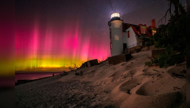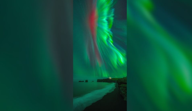 Cực quang tô vẽ bầu trời bằng những sắc màu kỳ lạ gồm xanh lá cây và xanh dương trong lần xuất hiện mới nhất này.