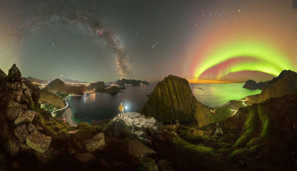 Filip Hrebenda đã chụp bức ảnh phong cảnh xanh ở Quần đảo Lofoten, Na Uy. Đêm đó, một cơn bão mặt trời có cường độ Kp5 xuất hiện tạo ra những dải màu xanh lục nhảy múa trên bầu trời. Những cơn bão với cường độ như vậy xảy ra khoảng 900 ngày trong chu kỳ hoạt động 11 năm của mặt trời.