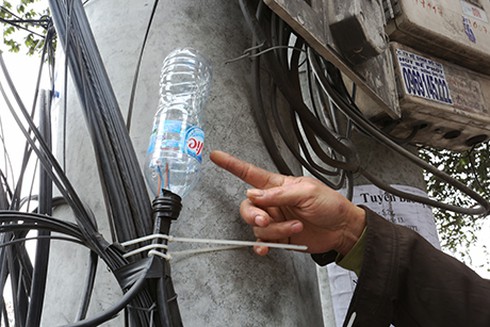 | Để phòng chập cháy cơ quan quản lý dùng chai nhựa để bọc tạm bợ. |