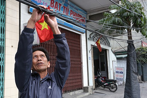 | Người dân thành phố thường xuyên phải lấy dây buộc lại không để dây lòng thòng gây mất an toàn. |