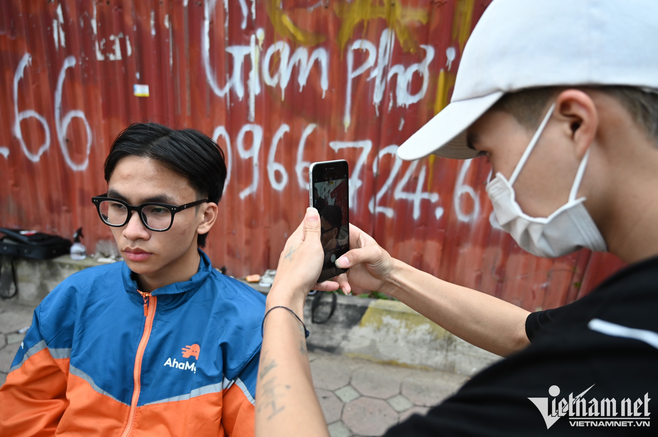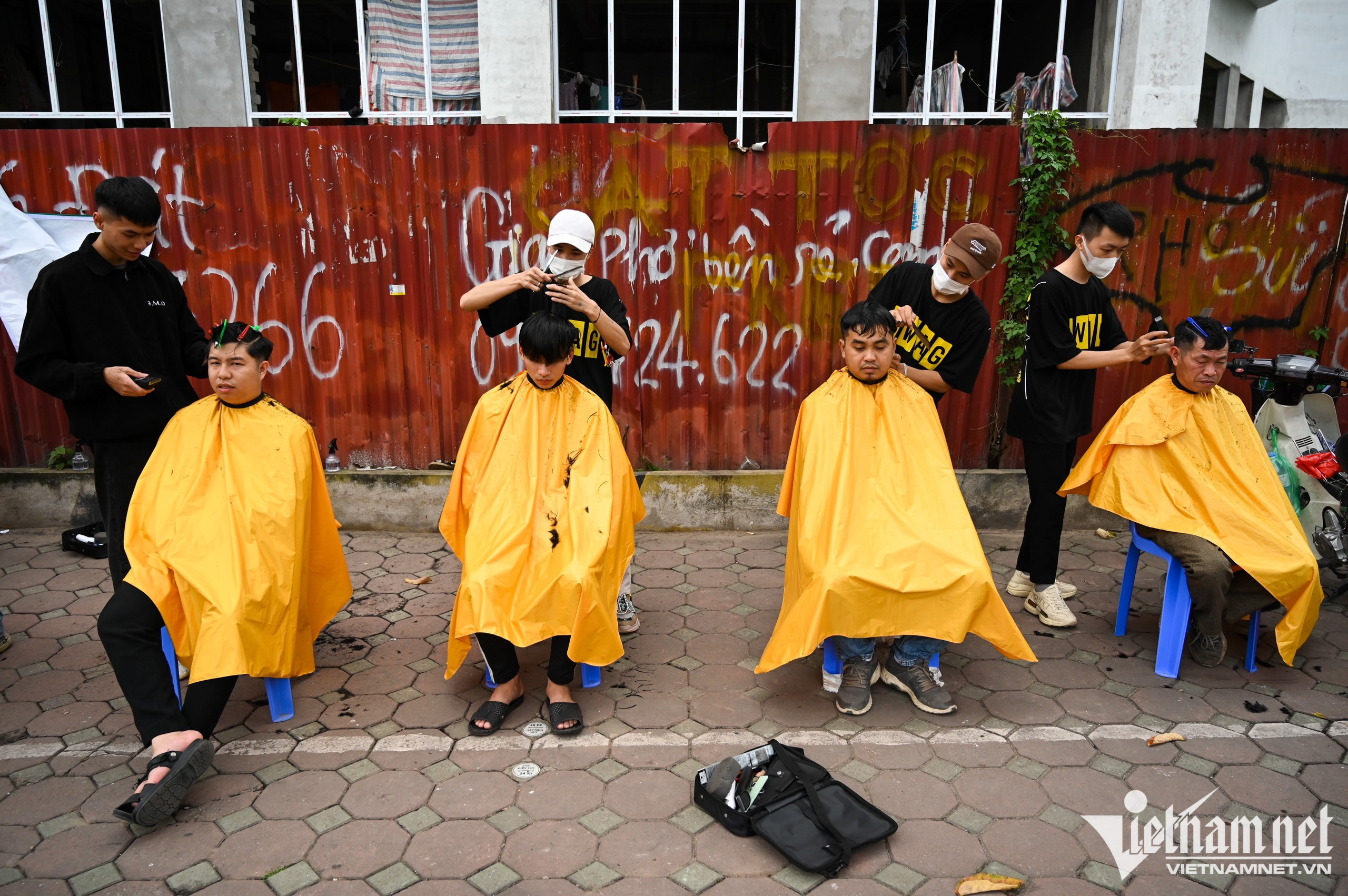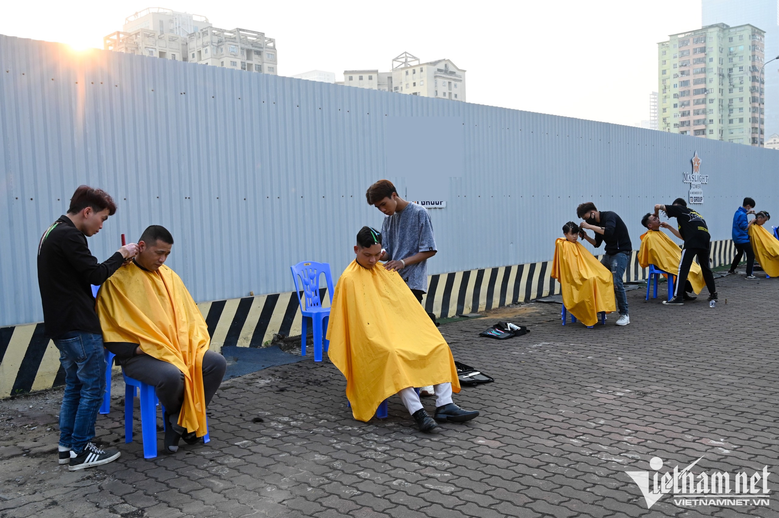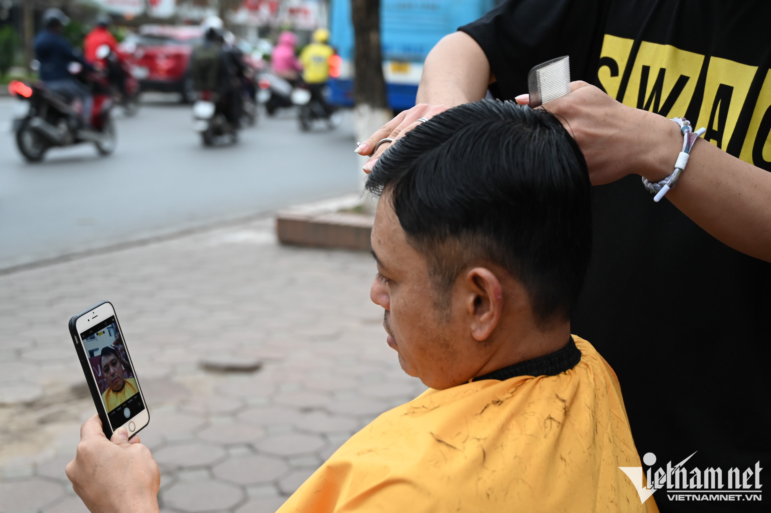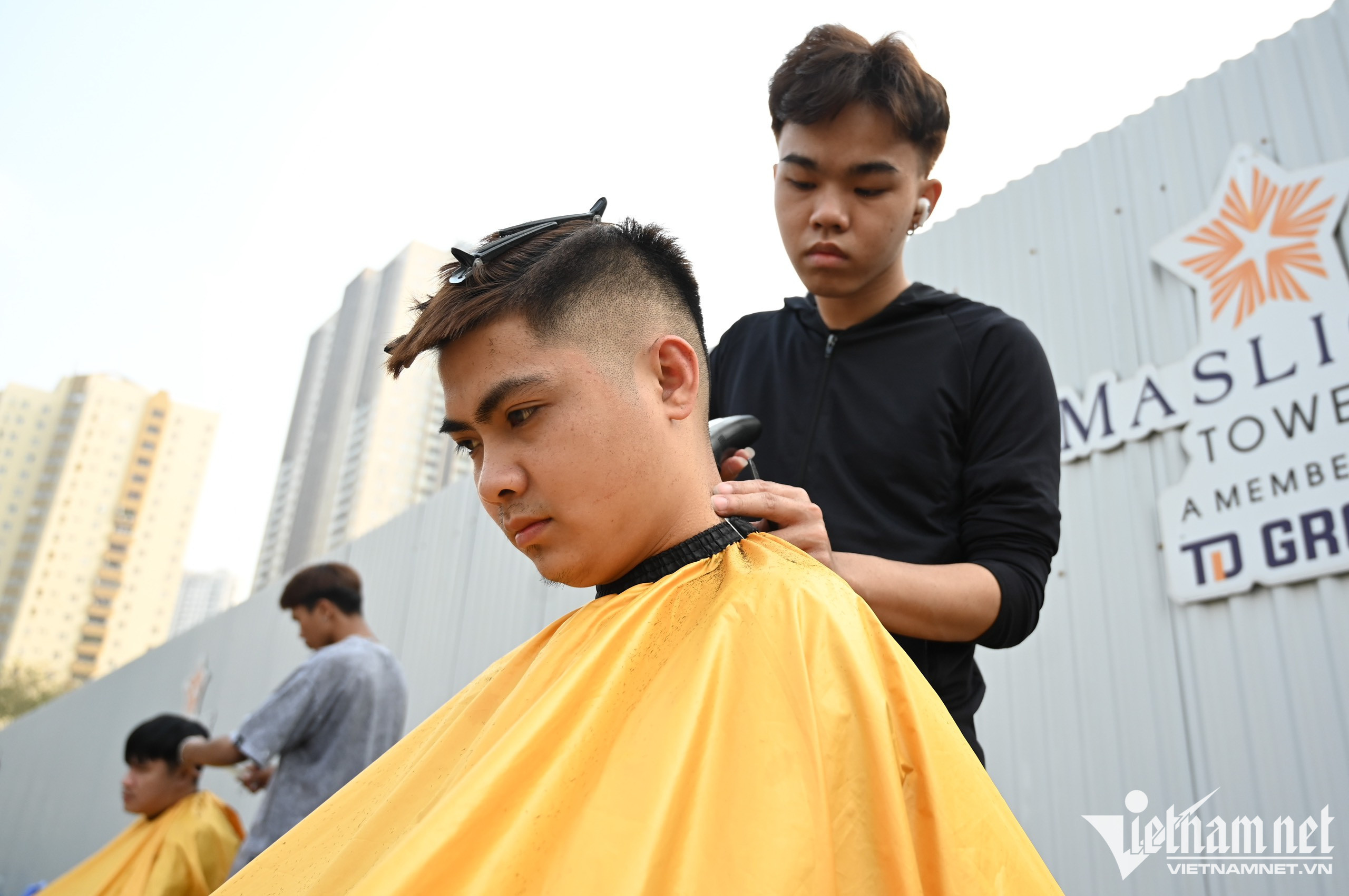 Trên một số tuyến phố như Trần Thái Tông, Mạc Thái Tông, Trung Kính (quận Cầu Giấy, Hà Nội) thường xuyên xuất hiện cảnh thanh niên ngồi ghế nhựa cắt tóc vỉa hè miễn phí. Ở đây luôn có khoảng 18-20 thợ cạo.
