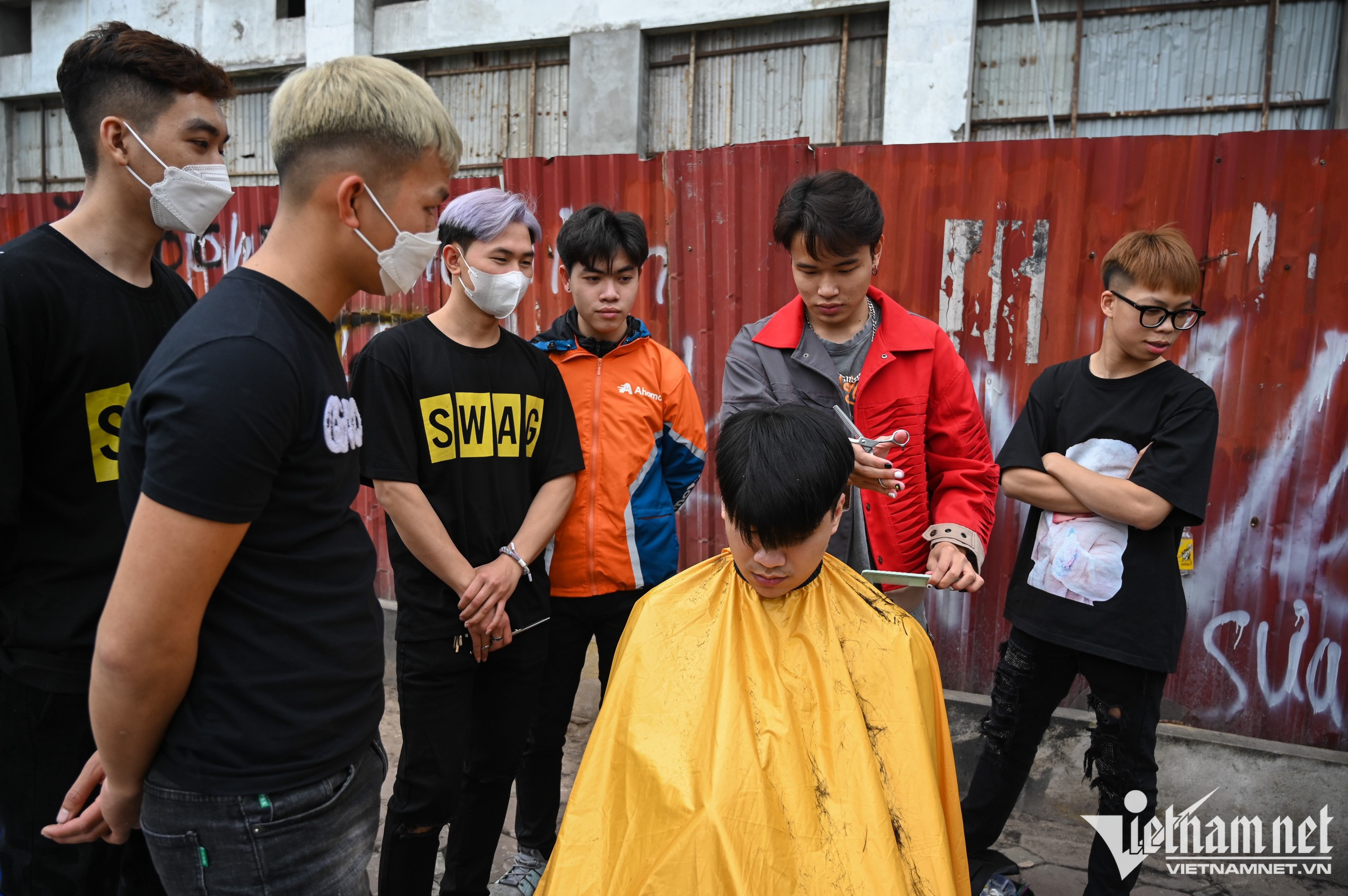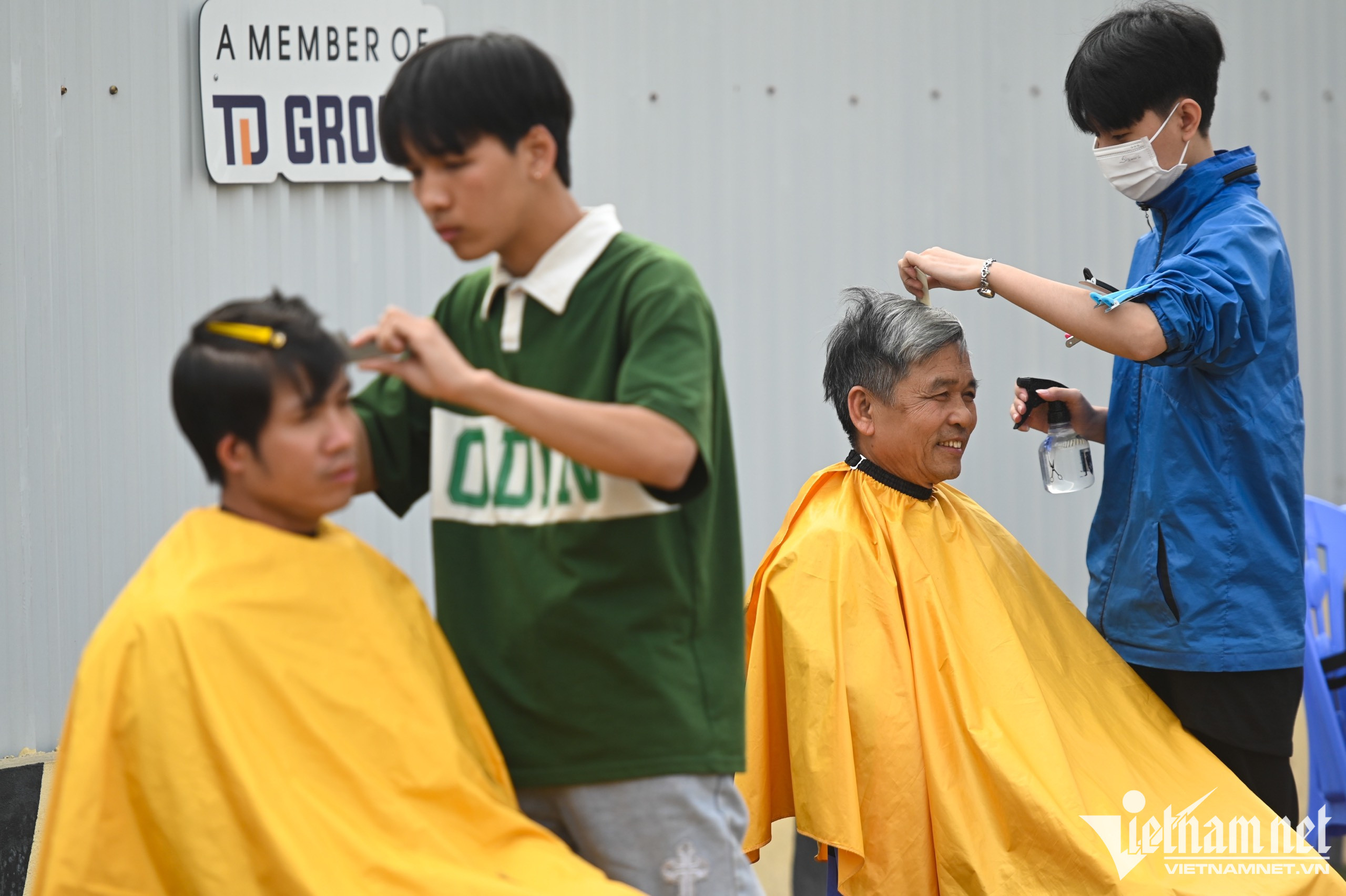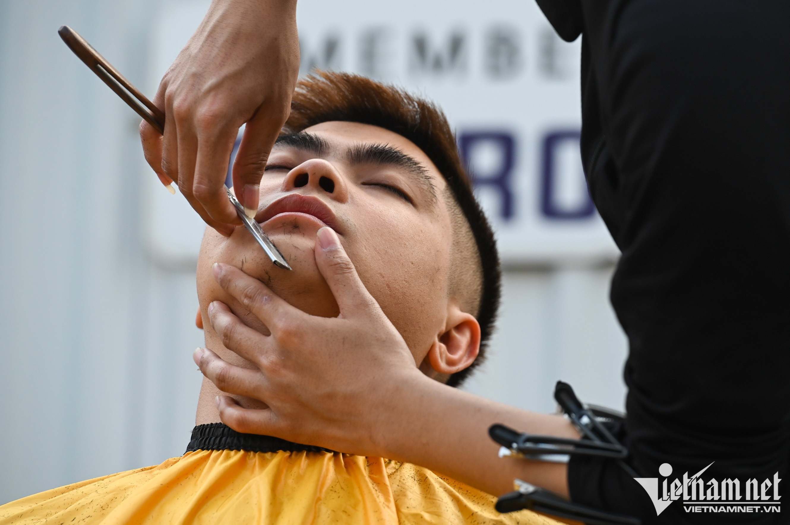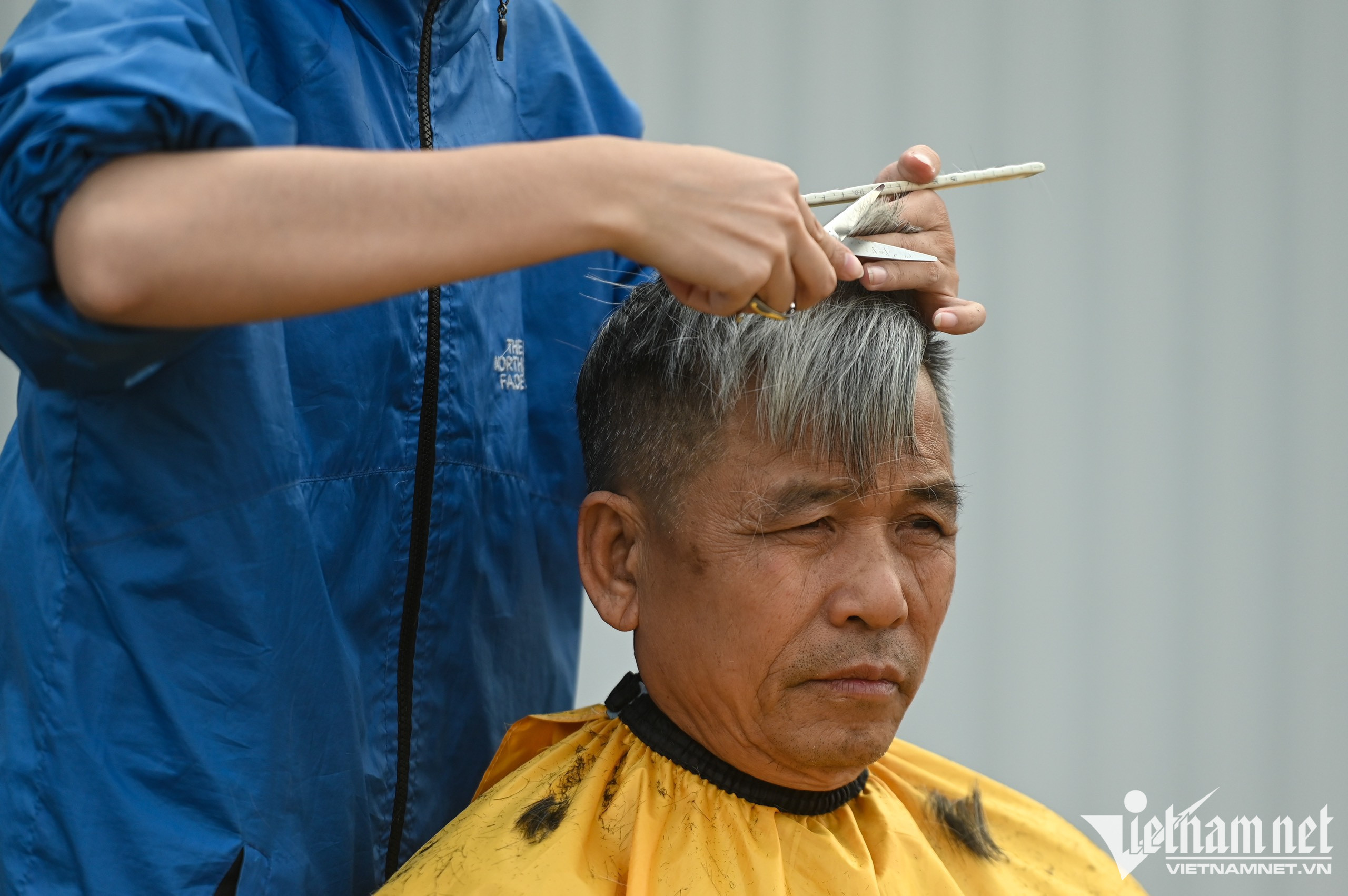 "Đi giao hàng qua đây vài lần thấy cắt tóc miễn phí tôi hơi phân vân vì nghĩ các bạn đều là thợ mới, lo bị hỏng. Thấy nhiều người vào tôi cũng thử", anh Thành (nhân viên giao hàng) tâm sự.