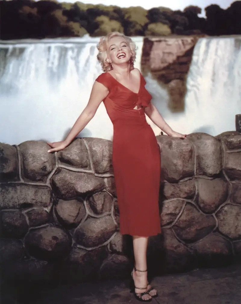Trên trường quay phim “Niagara” năm 1953, Marilyn Monroe xuất hiện trong một chiếc váy midi màu đỏ với thiết kế xẻ ngực và thắt nơ nhỏ ở giữa. Đạo diễn phim “Niagara” - Henry Hathaway đã thuê các nhà tạo mốt Dorothy Jeakins và Charles Le Maire để tạo ra thiết kế phù hợp với Marilyn Monroe.